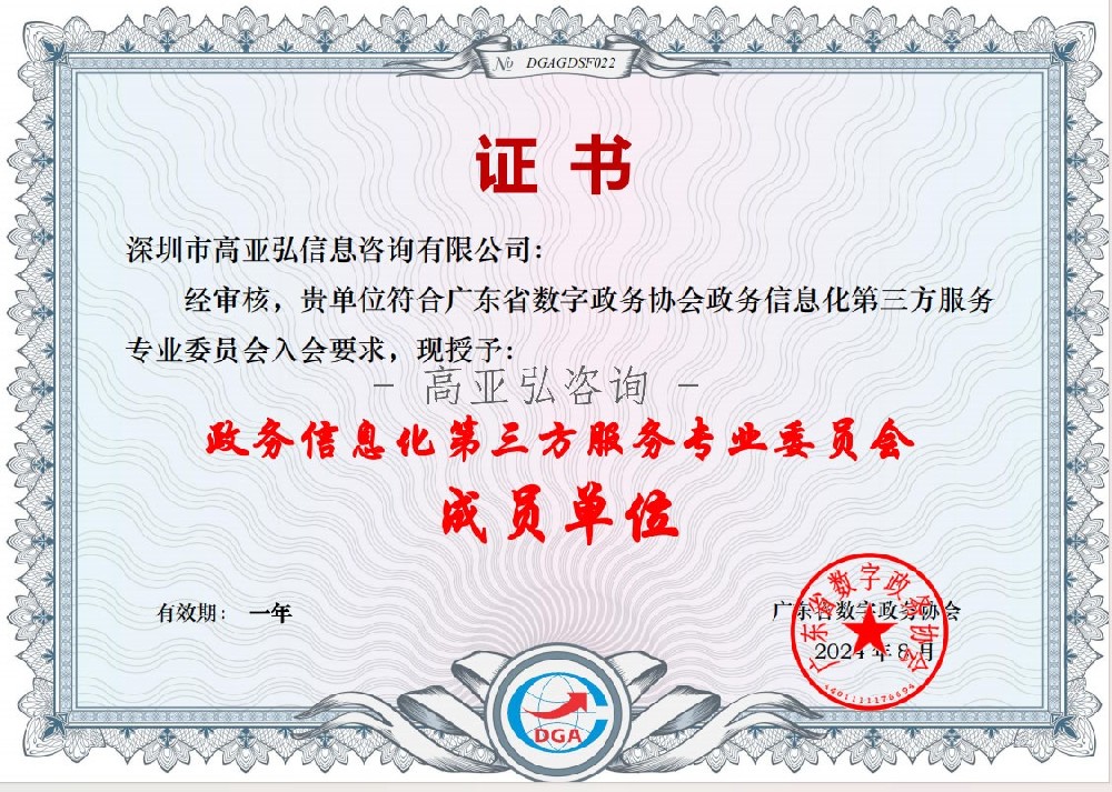广东省数字政务协会(原广东省电子政务协会)是我省电子政务领域专业性社会团体,是广东省政务数据管理局的相关规范制定单位,负责广东省内信息化项目的评优、服务标准的制定,出版了《电子政务工程造价指导书》,并负责组织广东省内软件工程造价师的培训,广东省大数据职称评审工作 。我司作为协会的深圳办事处,协助协会开展深圳地区软件工程造价师的培训、深圳市大数据职称评审工作等工作。